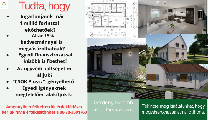 - Már 1 millió forinttal lekötheti a kiválasztott ingatlant!